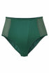彈力羅紋針織祖母綠下身,搭配中高腰斜側邊網眼異材質拼接設計,讓身材比例更滿分。
