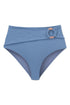 High waisted and adorned with a gold belt buckle, this moderate covered bottom is a staple in your closet. Best for those sporty days or beach strolling afternoons. Designed in a blue color that resembles the morning light brightening up the sky, this new textured crepe fabric will have you feeling ultra chic. Wear it with the Trae Top for the ultimate look.