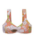 This daring top is scrunched in the front with straps that lace through the back. Wider shoulder straps for comfort. This retro floral print is made from our signature buttery fabric that feels like second skin. Wear it with the Haven Bottom to complete the look, or if you need more coverage try the Sutton Bottom.