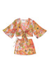 Flowy floral retro printed top with matching wrap skirt. The top ties in the front with extra long straps and a deep plunge neckline. Skirt opening is off-center to show off your stems. Wear it with your favorite Caicos bikni underneath and pair it with the matching hair wrap for the ultimate fit.