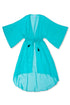 Sheer elegant long kimono w/ spaghetti tie & tassel tips. Beautifully flows in sheer fabric for dramatic entrance anywhere!