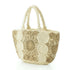 Sulci 此款幾何圓圖騰編織拉菲草包,以滿版幾何圖騰作為視覺焦點,靈感來自壯闊神秘的「納斯卡地畫」,彷彿在拉菲草編織上描繪出一幅大地畫作。每一個大小不一的圖案皆由工匠逐一縫製於前後包身,展現極致細膩的手工藝精神,三股編織提把設計,兼具舒適手感與獨特造型,搭配底部立體寬版結構,提供良好收納空間與包款挺度,無論日常外出或週末旅行都合適。