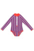 Darling one-piece with long sleeves, front zip and hot pink details. Great for sandy days at the beach or water play days at daycare. Match with your little one with any of the suits from the Monarch collection.