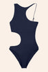 Nakuru 系列中的 Amara 連身泳裝,其深藍色的面料如同夜幕降臨時的 Nakuru 湖泊,靜謐而迷人,並以其獨特的不對稱剪裁設計,巧妙地突顯出女性優雅而自信的身姿。