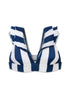 Sardinia系列 Cassandra Top 經典比基尼上身,以醒目的海軍藍和白色條紋為基底是對撒丁島豐富航海傳統的致敬,搭配上荷葉邊設計及V領剪裁,加上下擺緊身收尾,並帶入運動寬肩帶元素的設計,加強支撐力,非常適合胸部較為豐滿的女性,不論日常或是遊艇、池畔派對都能成為最吸睛的自信美麗焦點。