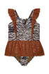Our pretty Nyla one-piece is made for escapades in and out of the water. Featuring our signature luxe animal print with mesh ruffles and matching skirt, the Nyla is perfect for days roaming young, wild and free.