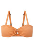 Be a queen in this Babycomb textured, golden cantaloupe number. Playfully complemented with tortoise hardware and back ties, this cutout bandeau top exudes a sultry, retro vibe.