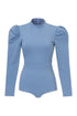 A high collar and puffy princess sleeve is all you need to take this 'fit from day to night. Zippered in the back with a long zipper pull making this a breeze to get in and out of. Our built-in belt creates an hourglass figure, while the bottoms are boy-like shorts giving fuller coverage. Wear it with white denim or a wrap skirt for sunset strolls.