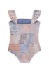 Delicate shoulder ruffles on this one-piece is perfect for sandy beach days or water play days at school. Printed in the same stunning reflection print as mommy's suit. Matchy matchy in the Niomie One-Piece and Carson Set for the boys.
