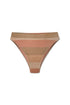 Complementing our Addyson Top, our crossover high-waist, high-leg Addyson Bottom features sunset hues of sandstone and deep mauve in luxe metallic fabric.